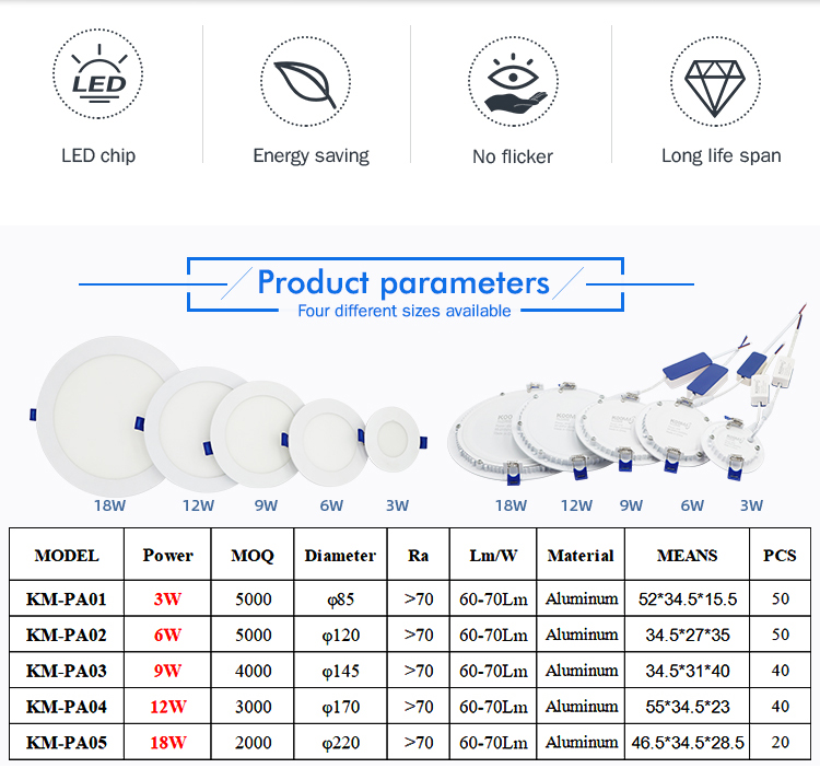 لد مسطح 3،6،9،12،18 واط